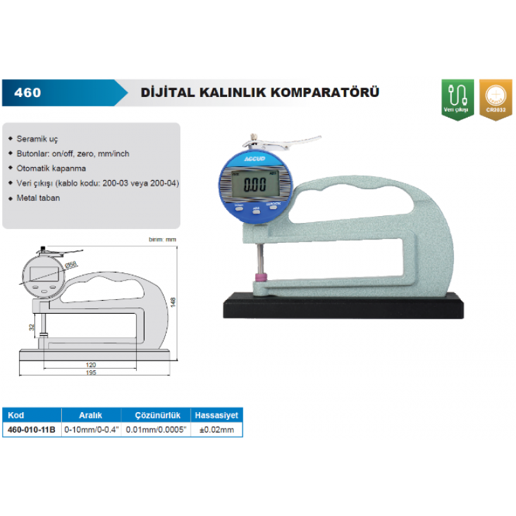 Accud Dijital Kalınlık Komparatörü 0-10mm / 460-010-11